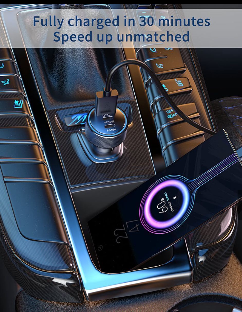 Akım koruma ile güvenli kullanım Akıllı ve güvenli şarj etme Akıllı telefonlarınız, Powerbank, Tablet, Navigasyon gibi cihazları rahatlıkla şarj edebilirsiniz Giriş: 100-240V AC Çıkış: 7.8A / 105W Tüm araçlara uyumludur Hp-780 105 Watt Araç Içi Şarj Cihazı 3.1A Pd 45 Watt Hızlı Şarj Aleti Metal Çakmaklık Şarj Type C 3-Port Işıklı