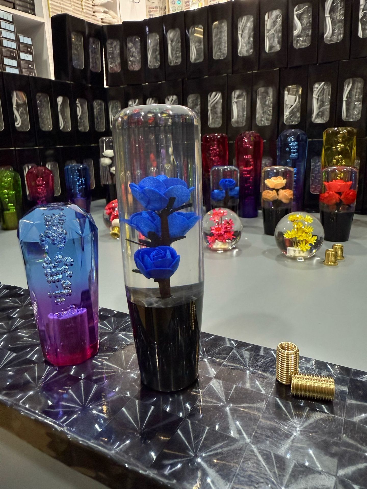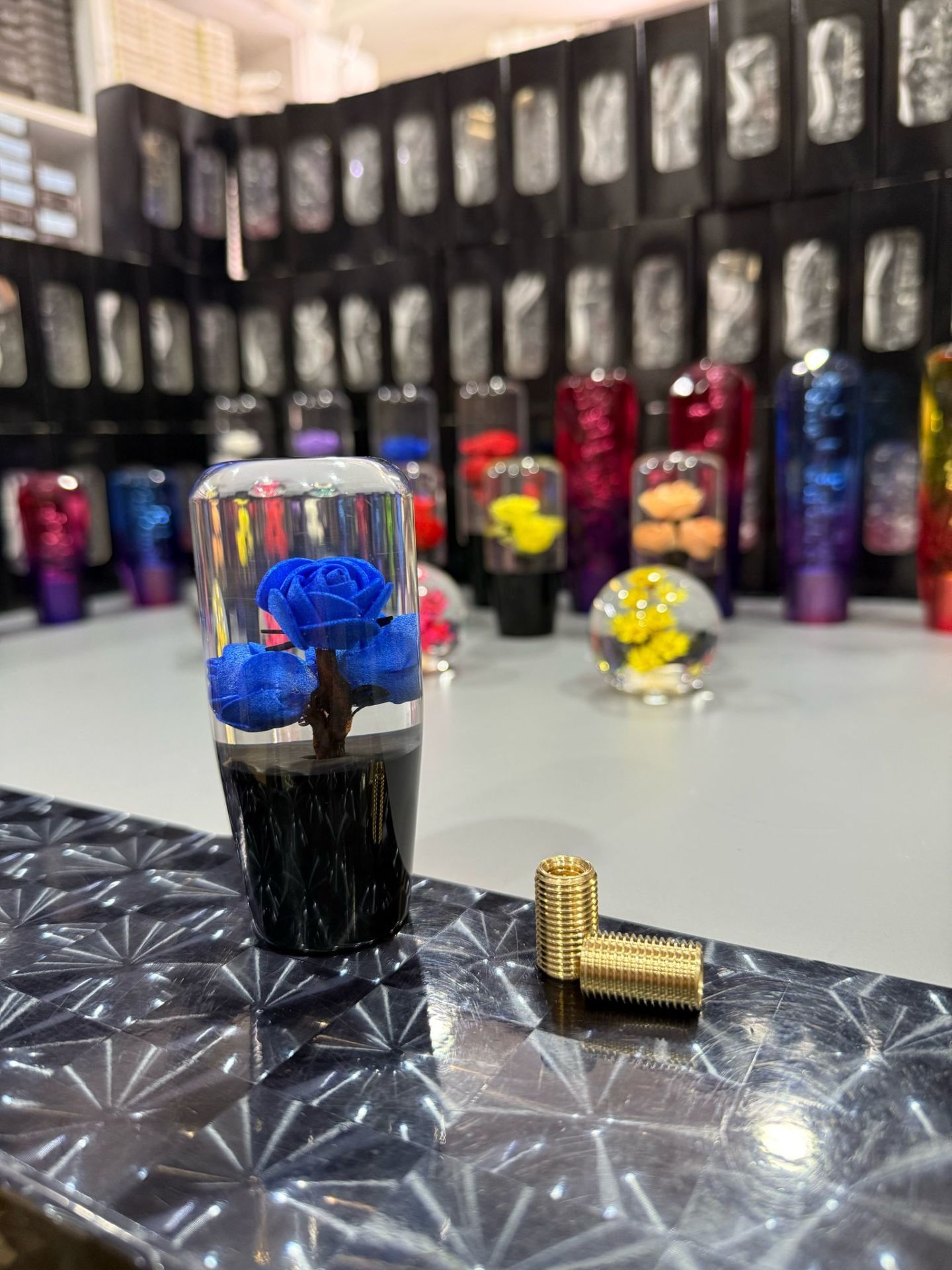 Mavi güllü vites topuzu