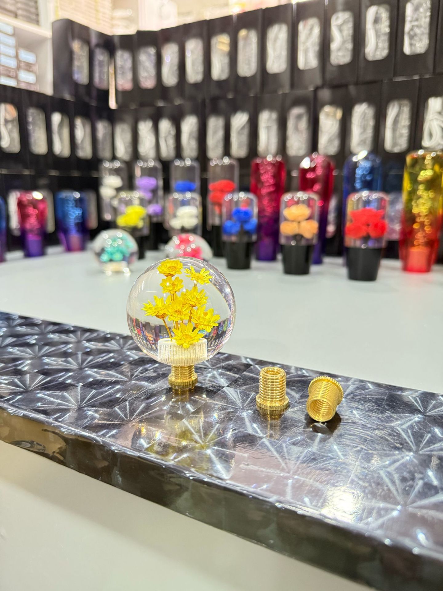 Yuvarlak çiçekli vites topuzu sarı